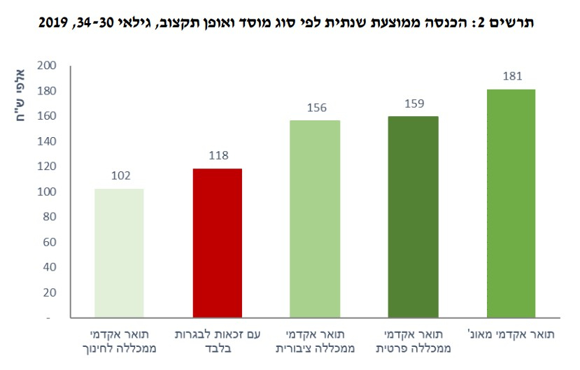 הידעתם?? על פי נתוני משרד האוצר: ההכנסה השנתית של בעלי תארים אקדמיים גבוהה פי 1.5 מההכנסה של בעלי תעודת בגרות בלבד. בעוד ההכנסה השנתית הממוצעת של בעלי תארים אקדמיים עומדת על 181,000 ש”ח, ההכנסה השנתית של בעלי תעודת בגרות בלבד עומדת על 118,000 ש”ח.